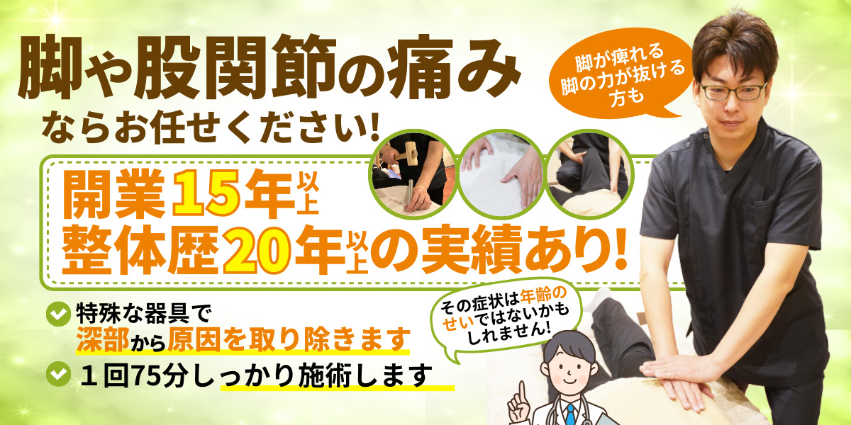 - 歩いている脚の力が抜ける、股関節のはまりが浅い方の痛みにも対応します
