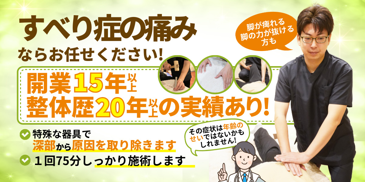 ※持病によっては使用できない場合もあります。ヒアリング時に聞いて判断します。(その場合には別の整体方法で痛みを取っていきます。)